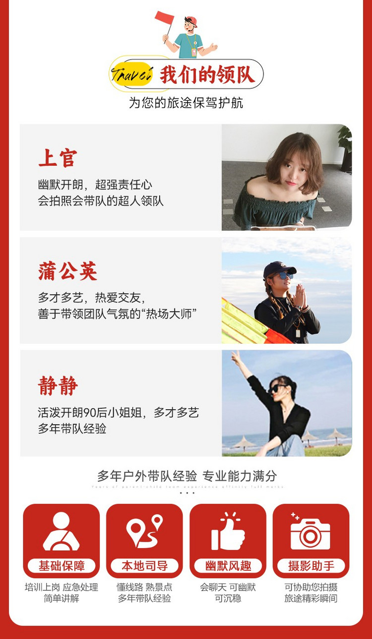 注:以上行程时间及顺序供参考,受天气、交通、景区调控及队员体能等不同影响有可能会调整,以领队实际安排为准。