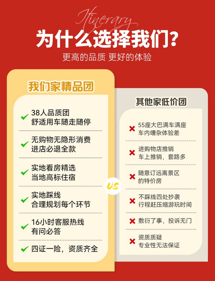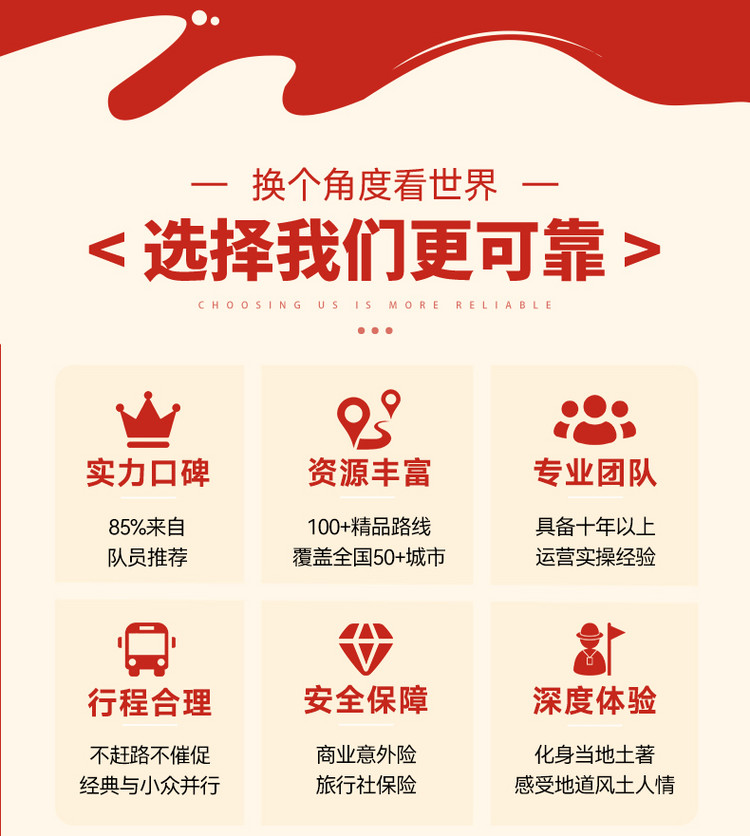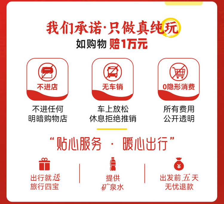 *无自然单房差:全程无自然单房差,单个报名默认同性别拼房,拼房不成功,我们来承担费用。