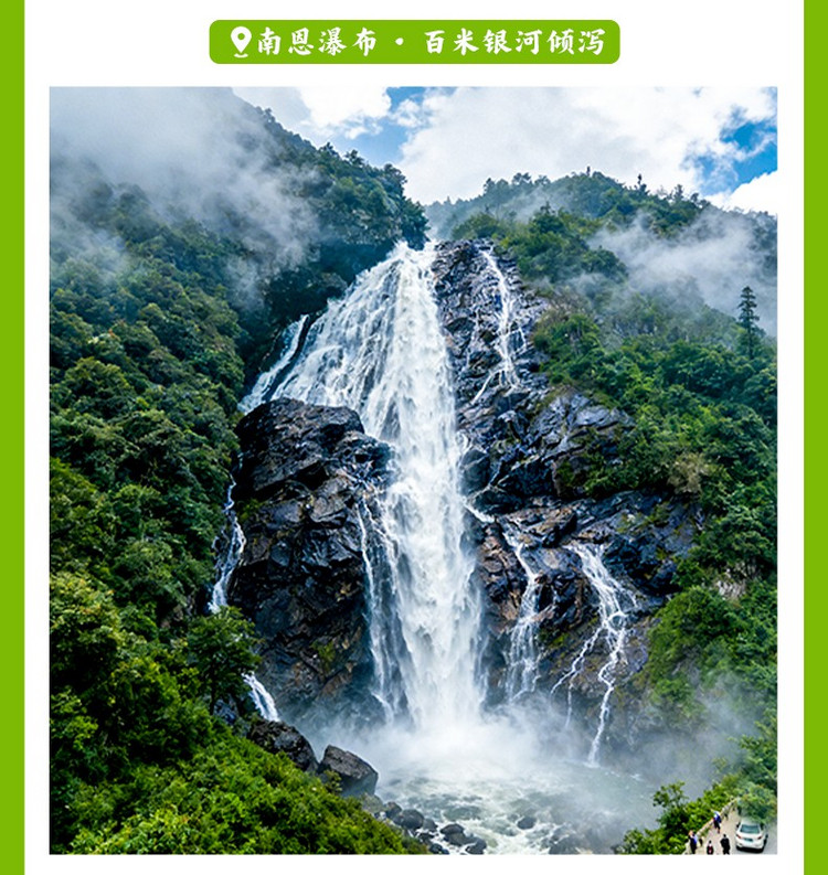 15:30 前往【南恩瀑布】,未见其形,先闻其声。南恩(傣语意为“银白色的水”)瀑布如一条巨幅白练,从哀牢山腹地的绿毯中奔泻而出,落差高达百余米。走近它,飞溅的水雾扑面而来,在阳光下幻化出彩虹。它狂野不羁,是“大山恩赐的礼物”,也是旅行中最具冲击力的自然交响。