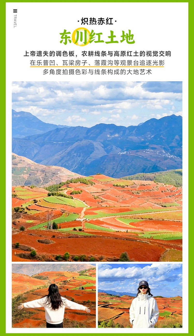 1. 东川红土地早晚温差相对较大,注意防寒保暖;