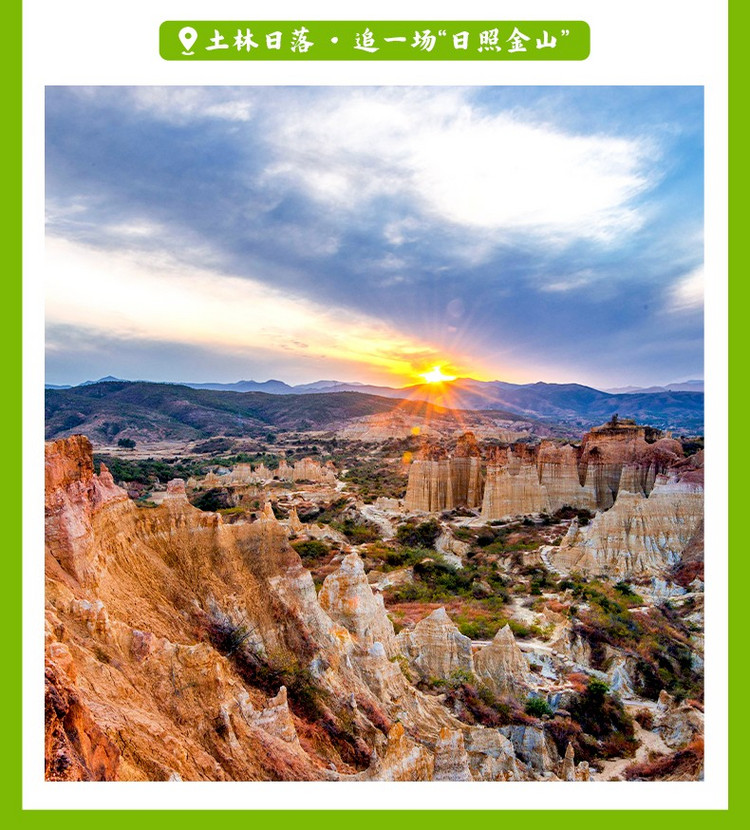 14:30 前往【浪巴铺土林】,驶离县城,闯入一片犹如外星的荒原。浪巴铺土林绝非温婉的风景,而是一场大地怒吼后凝固的盛大戏剧。成千上万的土柱、土峰、土墙在烈日下矗立,呈现出金、棕、赭红的斑斓色泽。穿行于迷宫般的沟壑之间,风蚀的痕迹刻画着时间的威力,恍惚间,仿佛能听见远古的风声与人类的足音在此共鸣。不论是任何视角都将这片异星荒原与人类的关系紧密相连,远古的记忆在时光之中流转入你的眼帘。