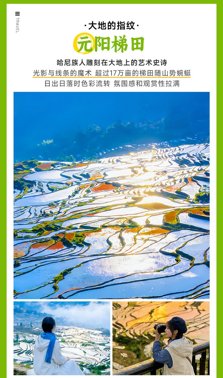 1、元阳梯田山顶海拔约1900米,早晚温差很大,请做好保暖,以防着凉;