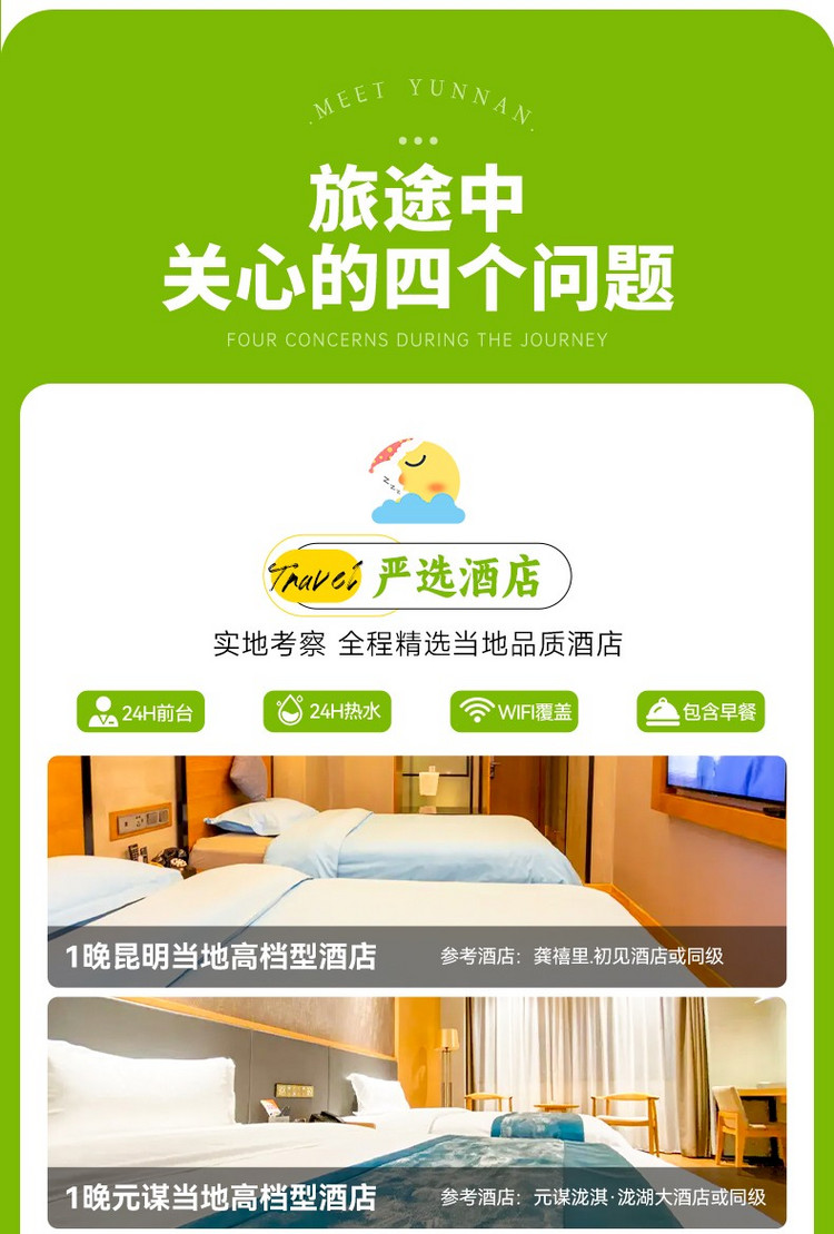 1、交通:昆明出发及昆明州解散的全程专属用车及司机星级服务(含司机餐补、住宿)