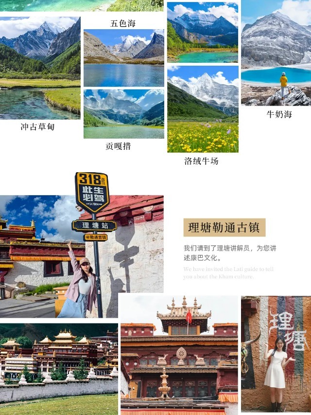 【行程概述】早餐后乘车离开雅江,沿途观赏【天路十八弯】的险峻,穿越【剪子弯隧道】,随后翻越【卡子拉山】(垭口海拔4718米),抵达【丁真的家乡】--理塘,这里风景绝美,六世达赖喇嘛仓央嘉措曾在诗里写下自己对理塘的向往:“洁白的仙鹤啊,请把你的翅膀借给我,我不会飞到很远的地方,我到理塘转转就回......‘’我们将在理塘游览《丁真的世界》宣传片里出现的【勒通古镇·千户藏寨】,这是全世界规模最大的传统藏寨群落,有超过4000栋的传统藏房,是探寻藏文化和康巴风情的不二之选。在这里,我们可以依次游览:【康巴人微博物馆】、【仁康古屋(先后降生过十三位德高望重的大活佛)】,随后参观康区历史最悠久、规模最大的藏传佛教黄教寺庙——【长青春科尔寺】,聆听它的传奇故事。游览后继续前行,经无量河,翻越形似兔子的【兔儿山】(垭口海拔4696米),途经青藏高原最大的古冰川遗址、稻城古冰帽--【海子山】自然保护区(海拔4500米),经桑堆小镇,在金秋季节可以观看【桑堆红草地】,当一座美丽的【白塔】映入眼帘的时候,我们就抵达了稻城。