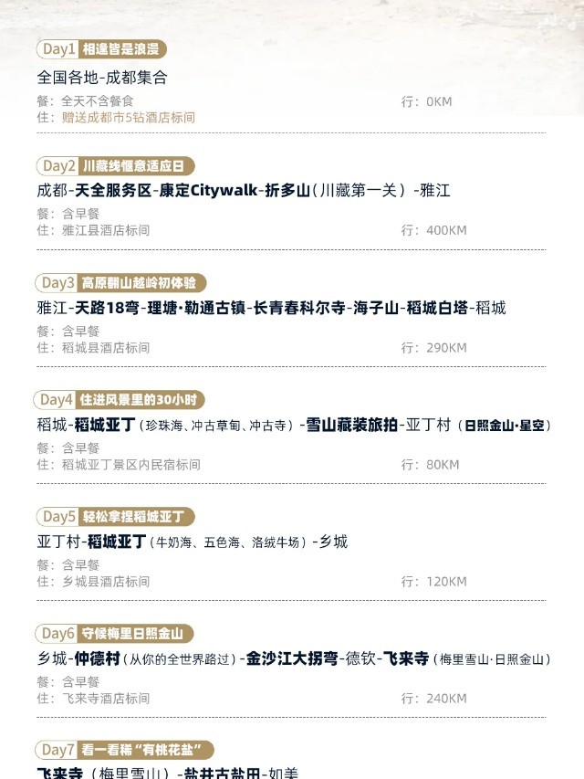 第2天:成都-天全服务区-康定Citywalk-折多山(川藏第一关)-雅江(收取旅游费用总额30%的损失费)