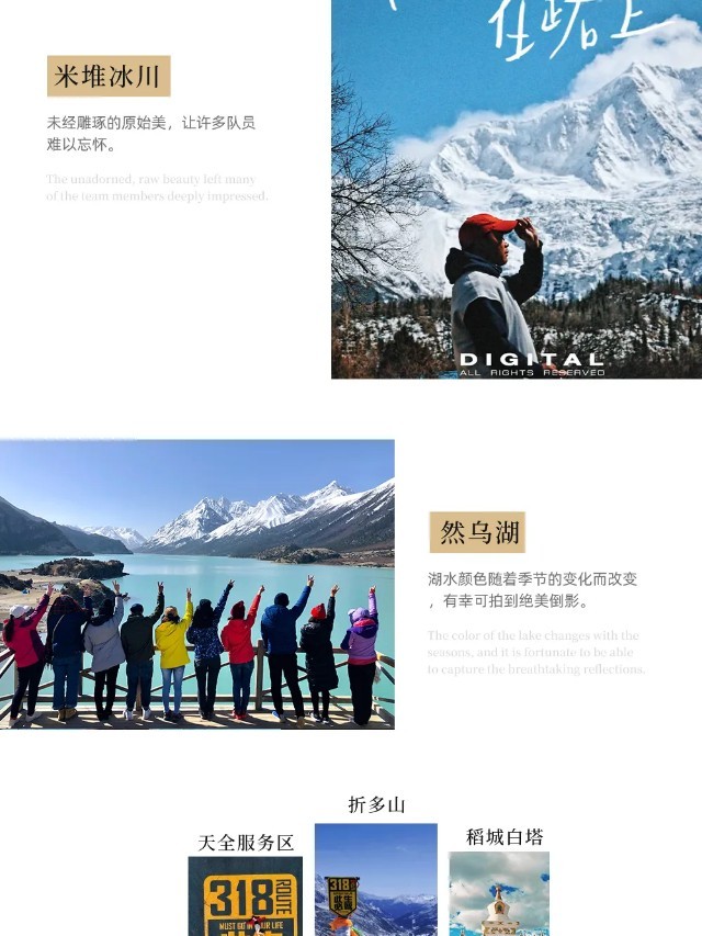 梅里雪山的雄伟壮观让我心生敬畏,还有一些小众景点,发现了很多不为人知的美丽角落,为这次旅行增添了惊喜。很值得!