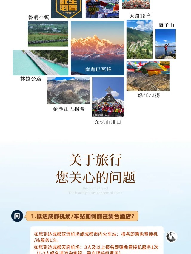 8、报名即赠成都双流机场接机/市内火车站接站(成都东站、成都南站、成都西站)1次,3人及以上报名赠成都天府机场接机1次。