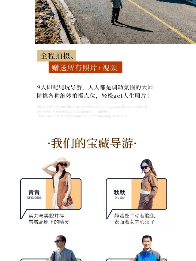 1、无人机航拍:4人即配无人机航拍记录(4-8人由司机拍摄、9-16人由导游拍摄),赠送所有视频+照片;