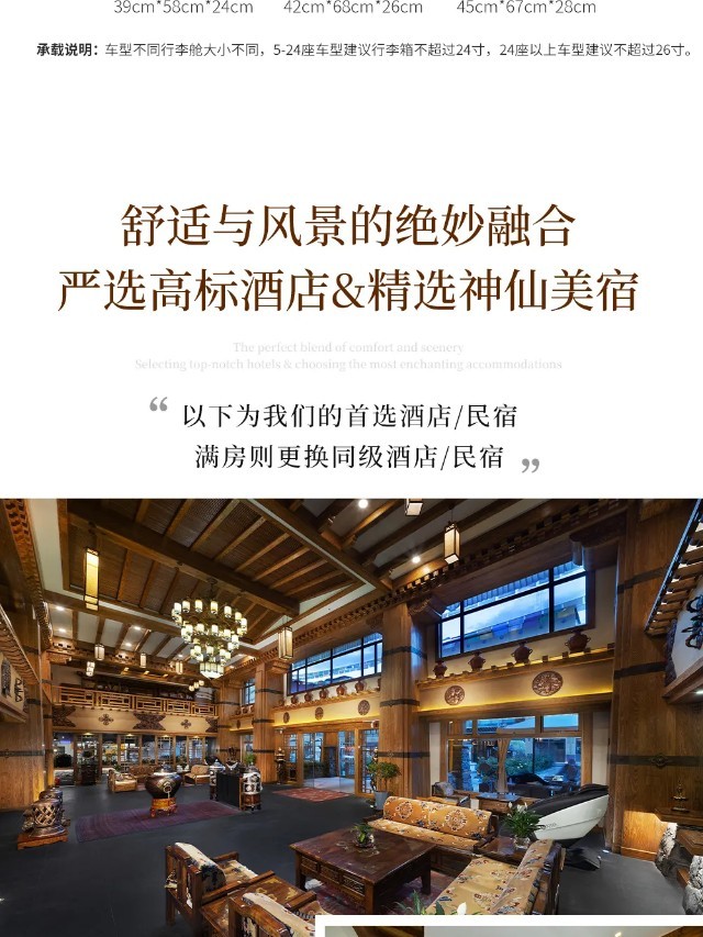 (2)到集合酒店报“大美川藏+姓名”拿房,房费已付,押金自付。入住酒店的时间一般在集合日当天的14点以后,如果您提前到达且酒店房间未整理出来无法办理入住,可将行李暂时寄存在前台,先在市区周边自由游玩;