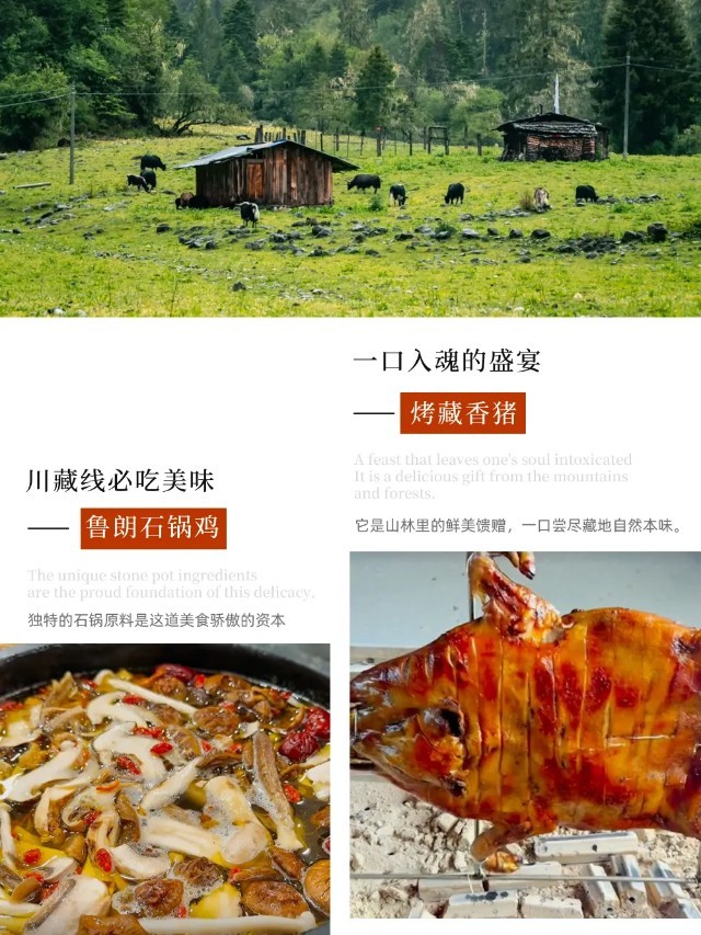 5、餐食:全程11个酒店早餐+3个正餐(盐井加加面、鲁朗石锅鸡、烤藏香猪),如队员另外点餐,需自己支付费用;