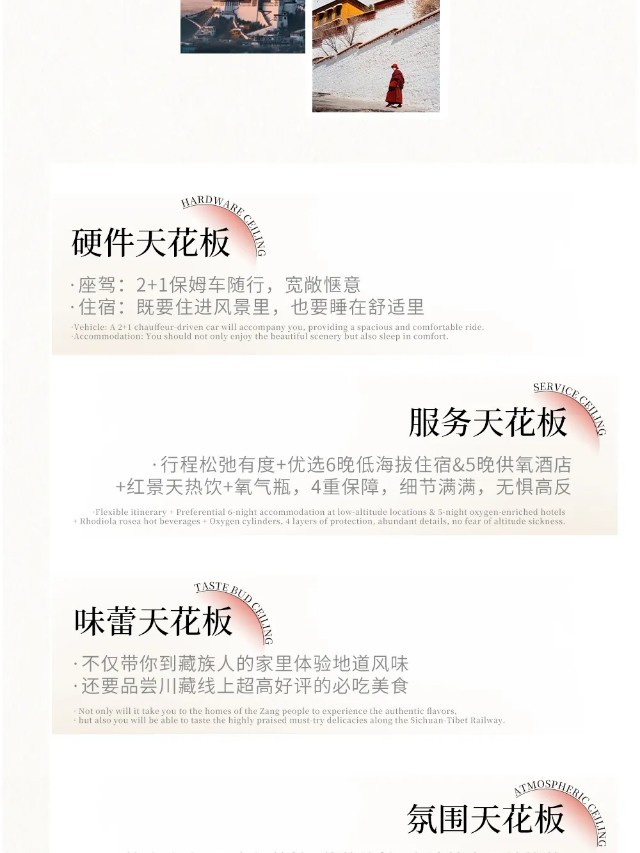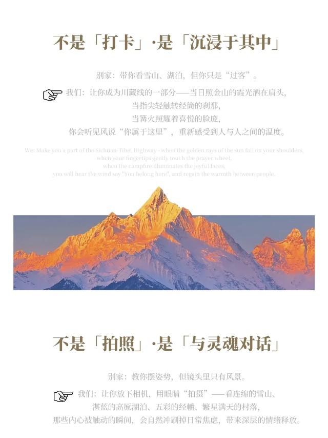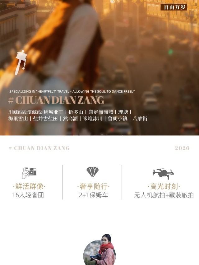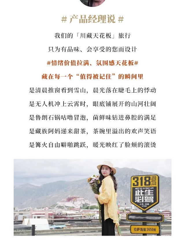 3、沿途特色活动:康定Citywalk、稻城亚丁轻徒步、守候日照金山、篝火晚会、布达拉宫·旱地拔葱&藏风咖啡、八廓街漫游;