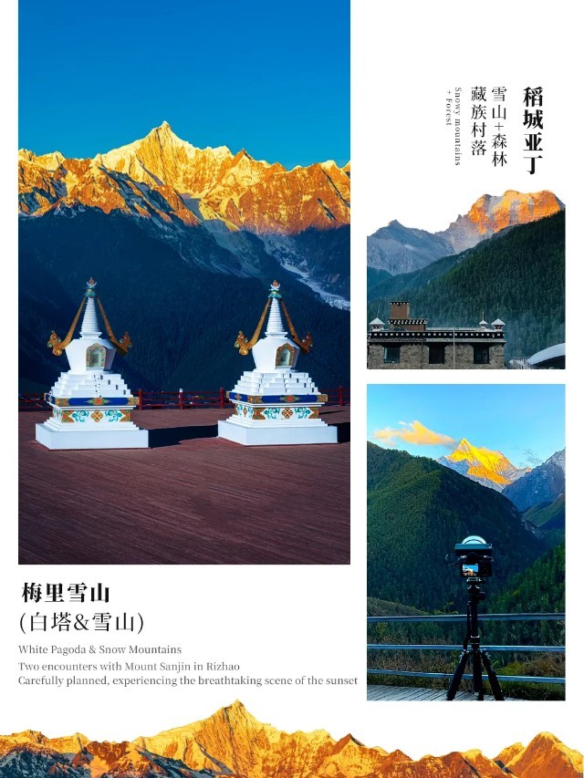 【行程概述】早餐后前往乡城县【仲德村】游览《从你的全世界路过》拍摄地,打卡电影中的广播站。那里有纯白的藏房,那里有五彩的经幡,那里有黄绿交错的藏乡田园,秀美得可以媲美世外桃源,这片如画般的土地不仅引得幺鸡和陈末来此采风,还见证了茅十八和荔枝的爱情,留下了他们手牵手奔跑的印记。早晨,一座座白色藏房在阳光的照耀下宛如人间仙境,美得真实又惊艳!每年9月,还可以体验采摘李子、苹果的乐趣。而后继续行车,途经奔子栏,奔子栏藏语意为“美丽的沙堤”,是【茶马古道】由滇西北进入西藏或四川的咽喉之地,从古到今都是重要的交通要道。过了奔子栏,就来到了以“雄、奇、险、峻”著称的【金沙江大拐弯】,参观后继续前行,经德钦县,抵达飞来寺入住。如果天气好,队员们可以去等候【梅里雪山】的日照金山以及拍摄梅里十三峰,梅里雪山在藏区称卡瓦格博雪山,它是云南第一高峰、“藏区八大神山”之首、“中国最美的十大名山”之一。