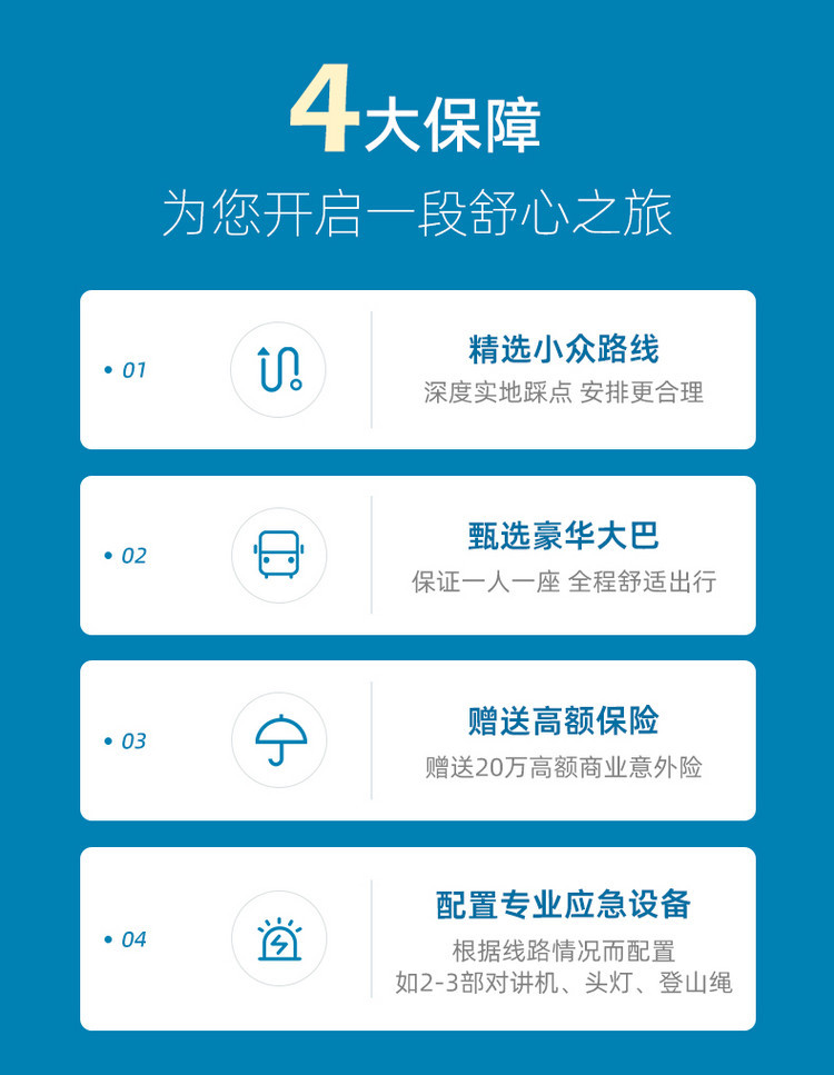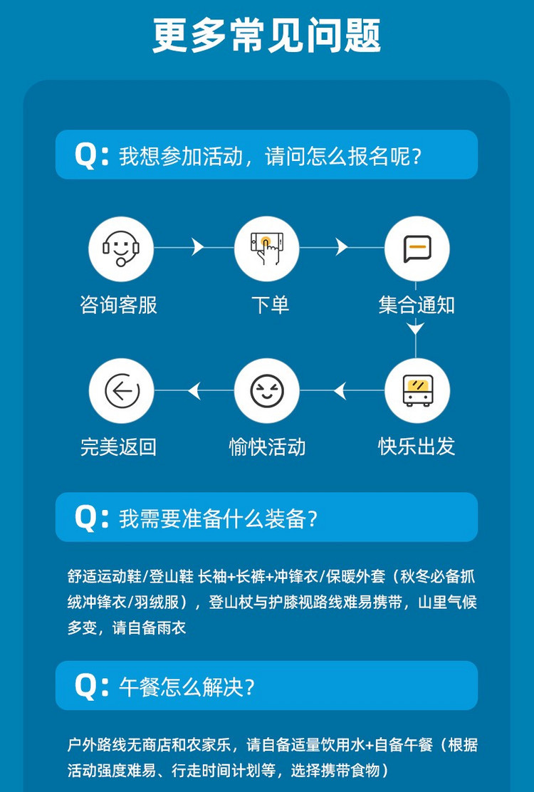 5、 此旅行给大家投保专业户外旅行意外险,保险从集合日开始到活动结束日为止。