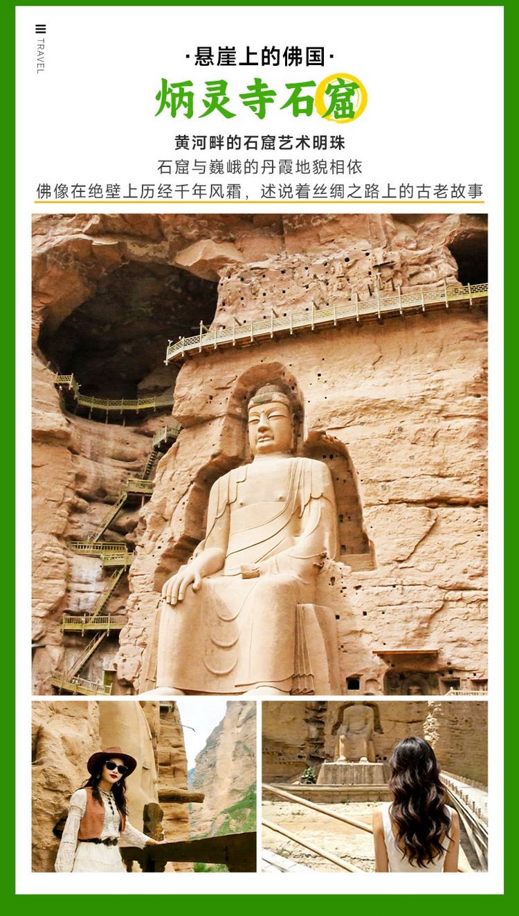 早餐后前往【炳灵寺石窟】(车程约40公里,用时约1小时,游玩约1小时),它矗立在碧绿的黄河水库旁,需要乘船前往。这里的石窟与丹霞地貌奇观“万笏朝天”融为一体,佛像在绝壁上历经千年风霜。