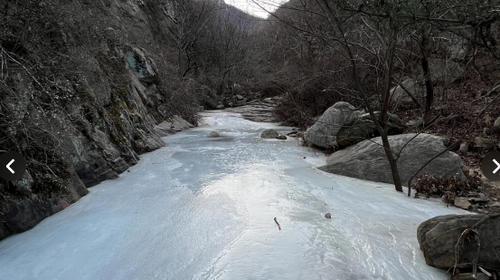 出行时间20241221,潭峪冰瀑确实不错,拍照很出片,山顶的寺庙(最顶的那里)背后也很出片。潭峪口道路很宽,危险性低,不过冬季有积雪和冰,务必穿一双防滑的鞋子,最好有冰爪。不过全程记录下来走了18公里,到冰瀑五公里,往返10公里,带小朋友的需要注意