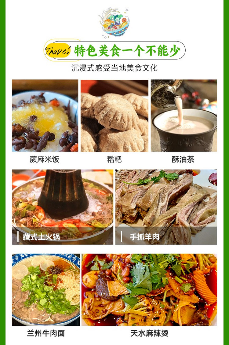 1、交通:天水出发及兰州解散的全程专属用车及司机星级服务(含司机餐补、住宿)